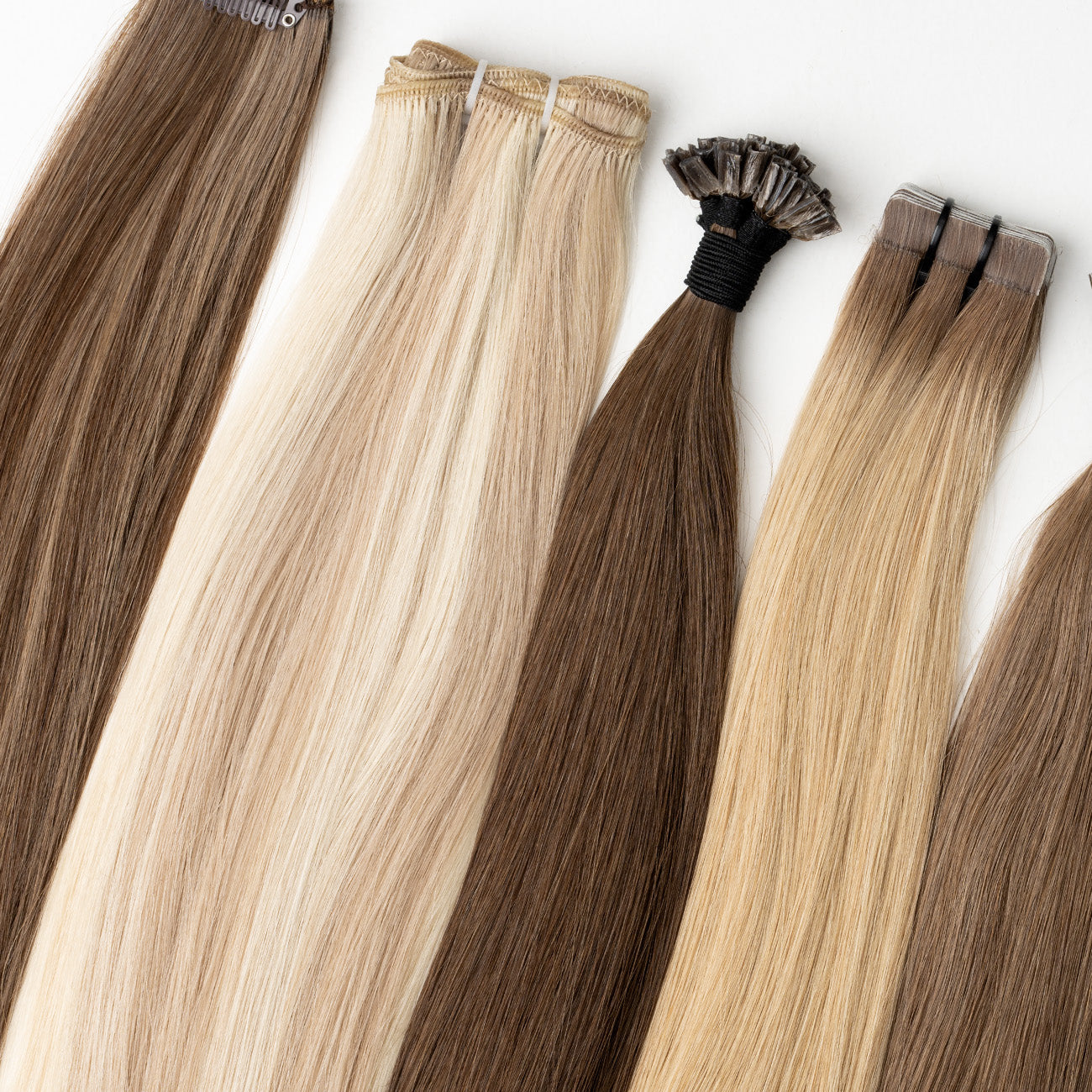 We hebben een ruime keuze aan kleuren – zowel gemengde kleuren, balayage, met en zonder basiskleur – zodat je de extensions kunt vinden die het beste bij je eigen haarkleur passen.