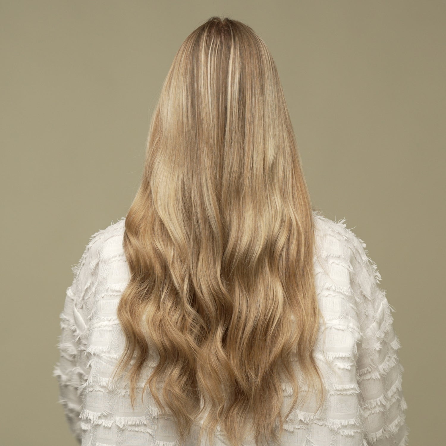 Onze Halo extensions worden geleverd met 3 verschillende draadlengtes, zodat je kunt kiezen welke het beste bij je hoofd past. Probeer de verschillende draden voordat je je Halo extensions vastmaakt.