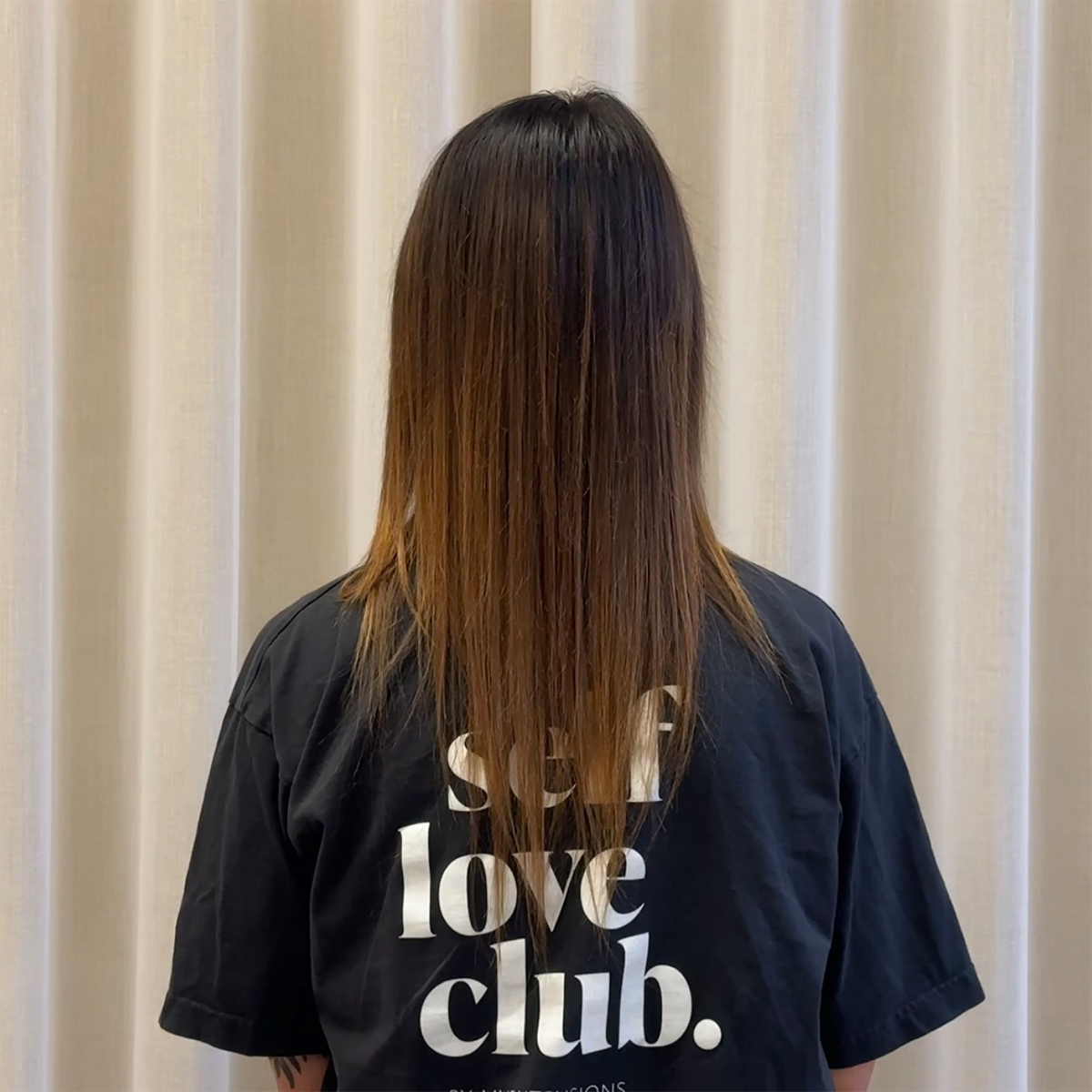 Zodra je de volledige invisible tape weft hebt aangebracht, ben je klaar. We raden altijd aan om de uiteinden van je extensions een beetje bij te knippen, maar de keuze is natuurlijk aan jou.